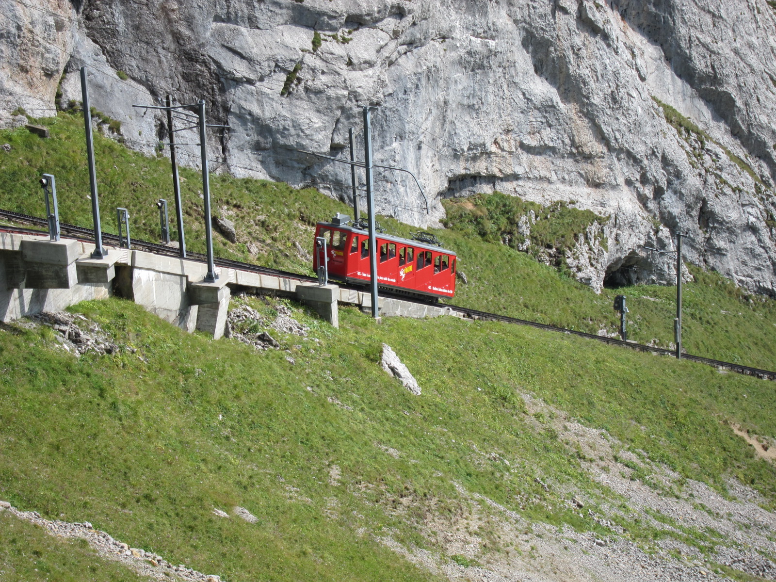 これはピラトゥスクルムへ上る世界一の傾斜を上る登山鉄道です。