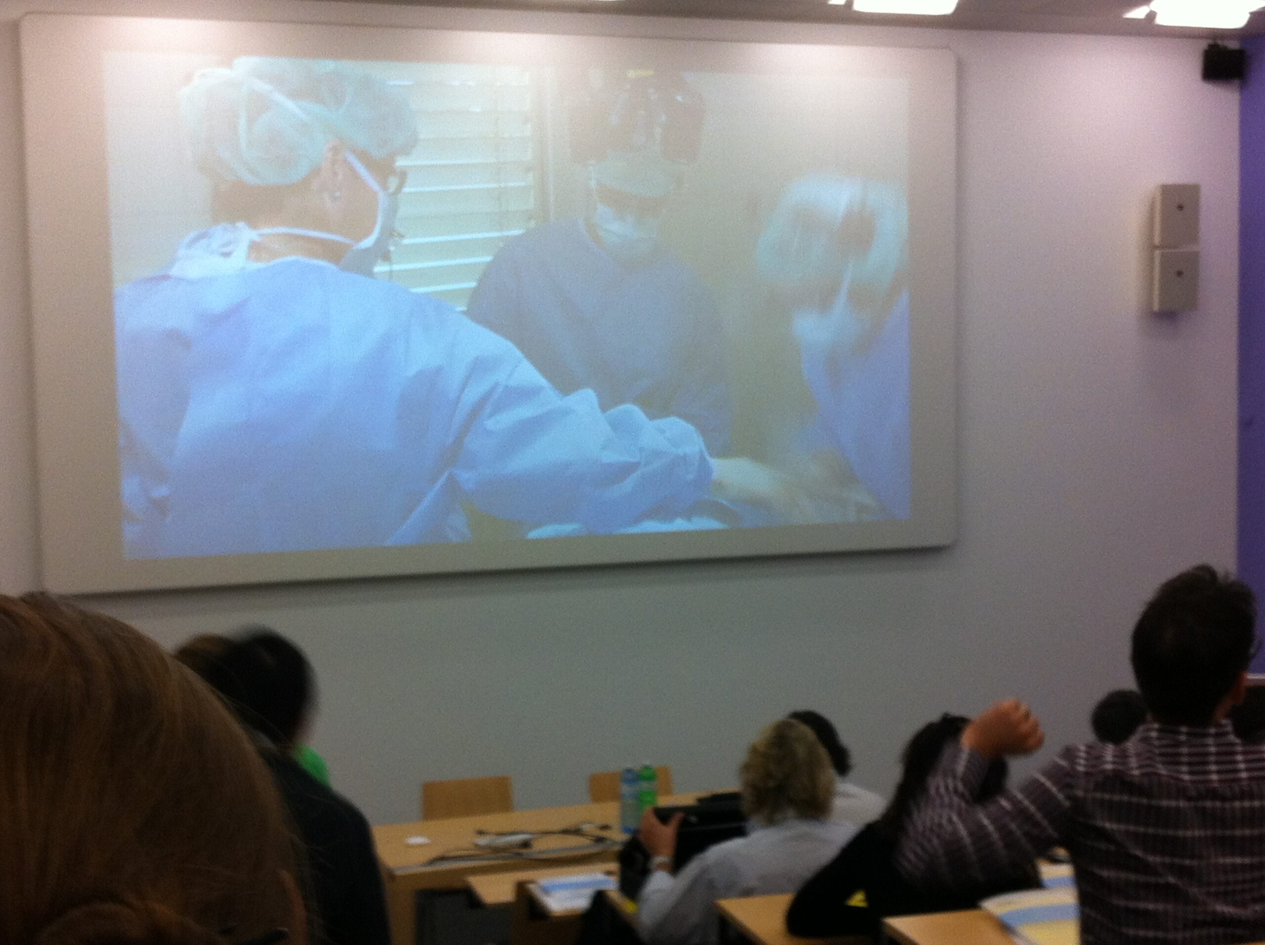 特にブーザー教授のライブオペは、3台のビデオカメラによる鮮明な映像が講義室の大スクリーンに映し出され、詳細な解説と相まってとてもわかりやすかったです。