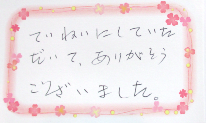 今後のケア方法もとてもていねいに指導、アドバイス頂けてありがたいと感じました。