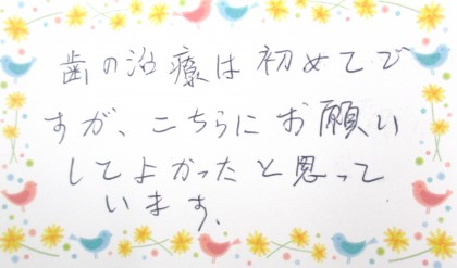 歯の治療は初めてですが、こちらにお願いしてよかったと思っています。