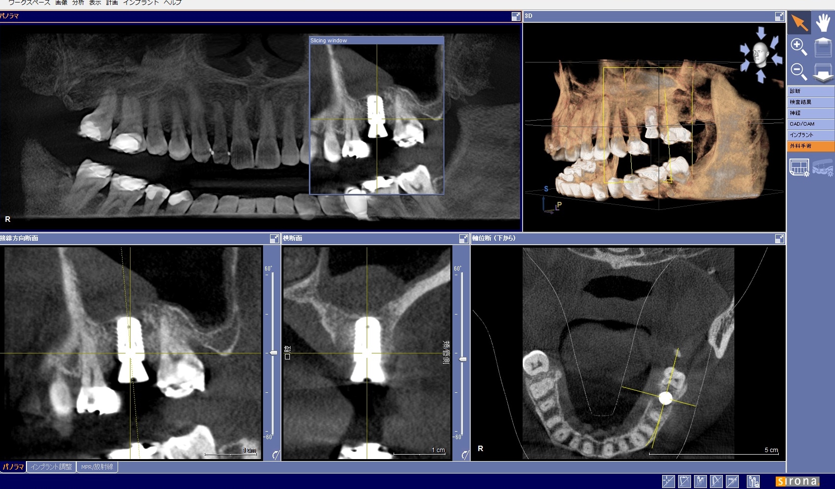 オペ後のCTですが、上顎洞底までの骨を有効に使って正確な位置に埋入できます。