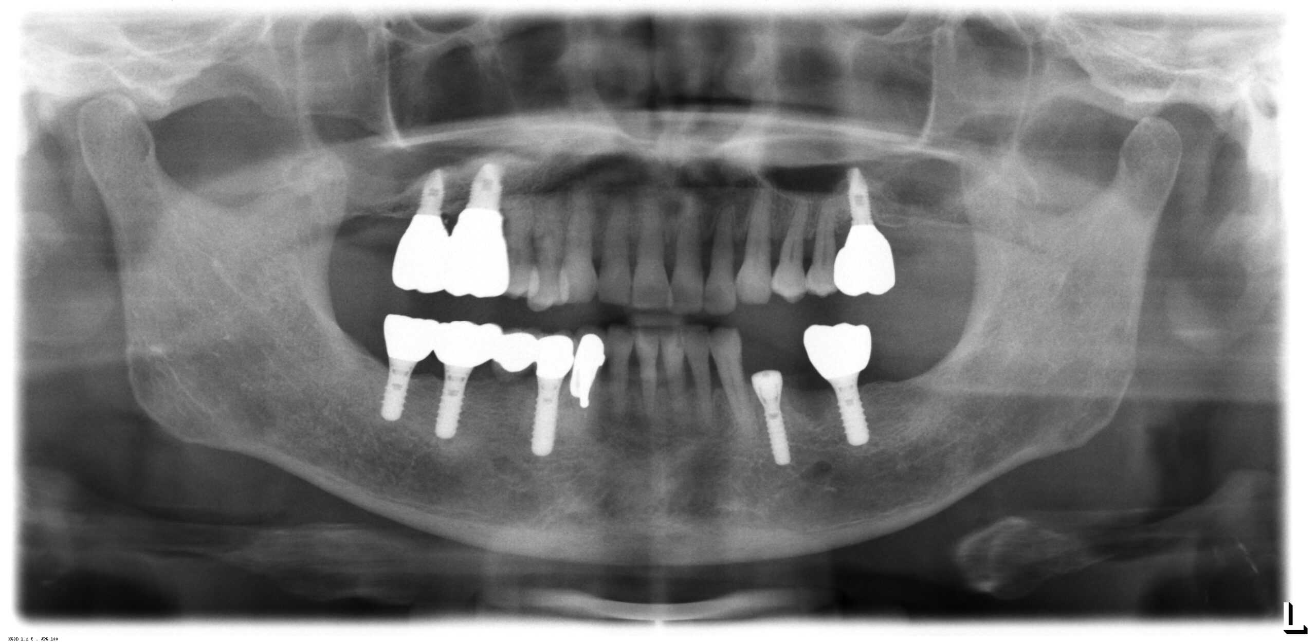 その翌年に左上下の奥歯の欠損に1本づつのインプラント義歯を植立して歯周病のメインテナンスを継続していました。