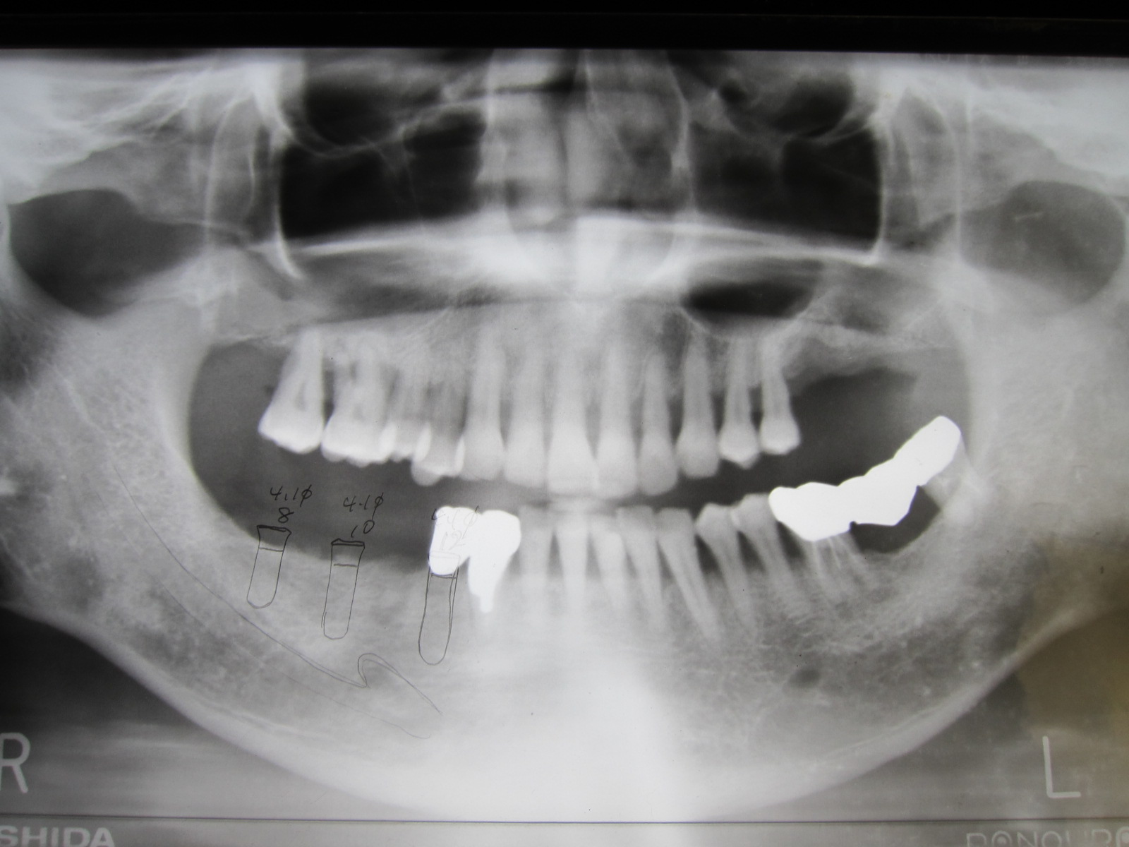 9年前の初診時、右下にインプラントの埋入を計画した時のレントゲンです。