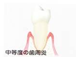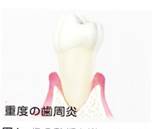 歯周ポケット4~6㎜と深くなり、歯根の半分近くまで歯槽骨が破壊されます。歯茎の腫れや出血い加え、歯が浮いた感じや海が出る事もあります。
