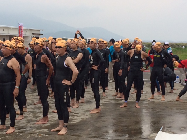 日曜日は、朝の3時半に起床して、4時から朝食をとり5時にはホテルを出て6時にスイム競技が行われる富江港に移動しました。