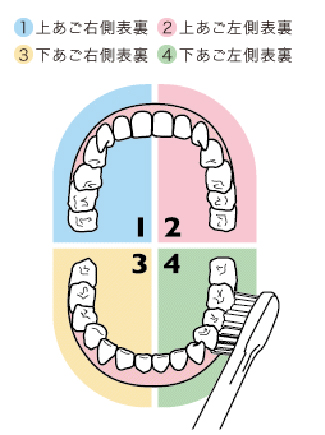 ブラッシングの際に自分がちゃんと4ブロック8面を磨いているか