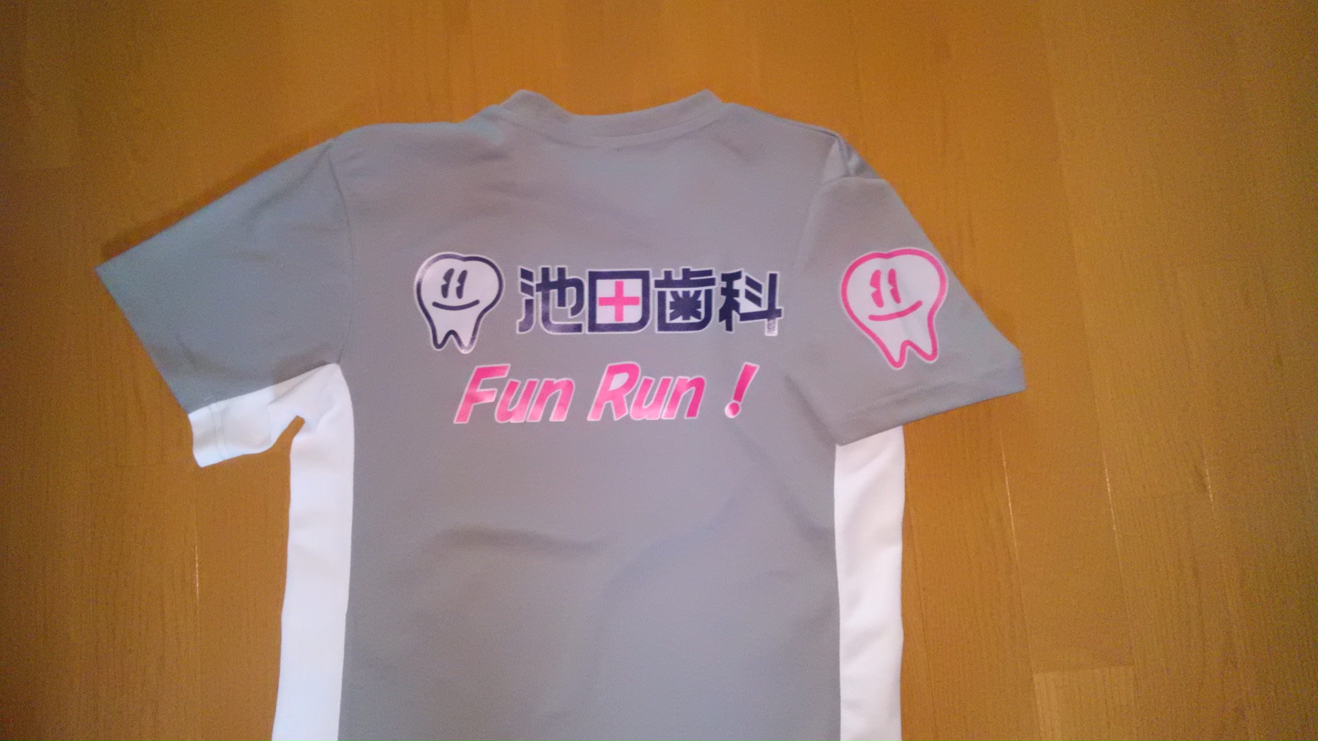 ファンランのメンバーは、写真のTシャツを着て走っています。気づいたら声をかけてください。