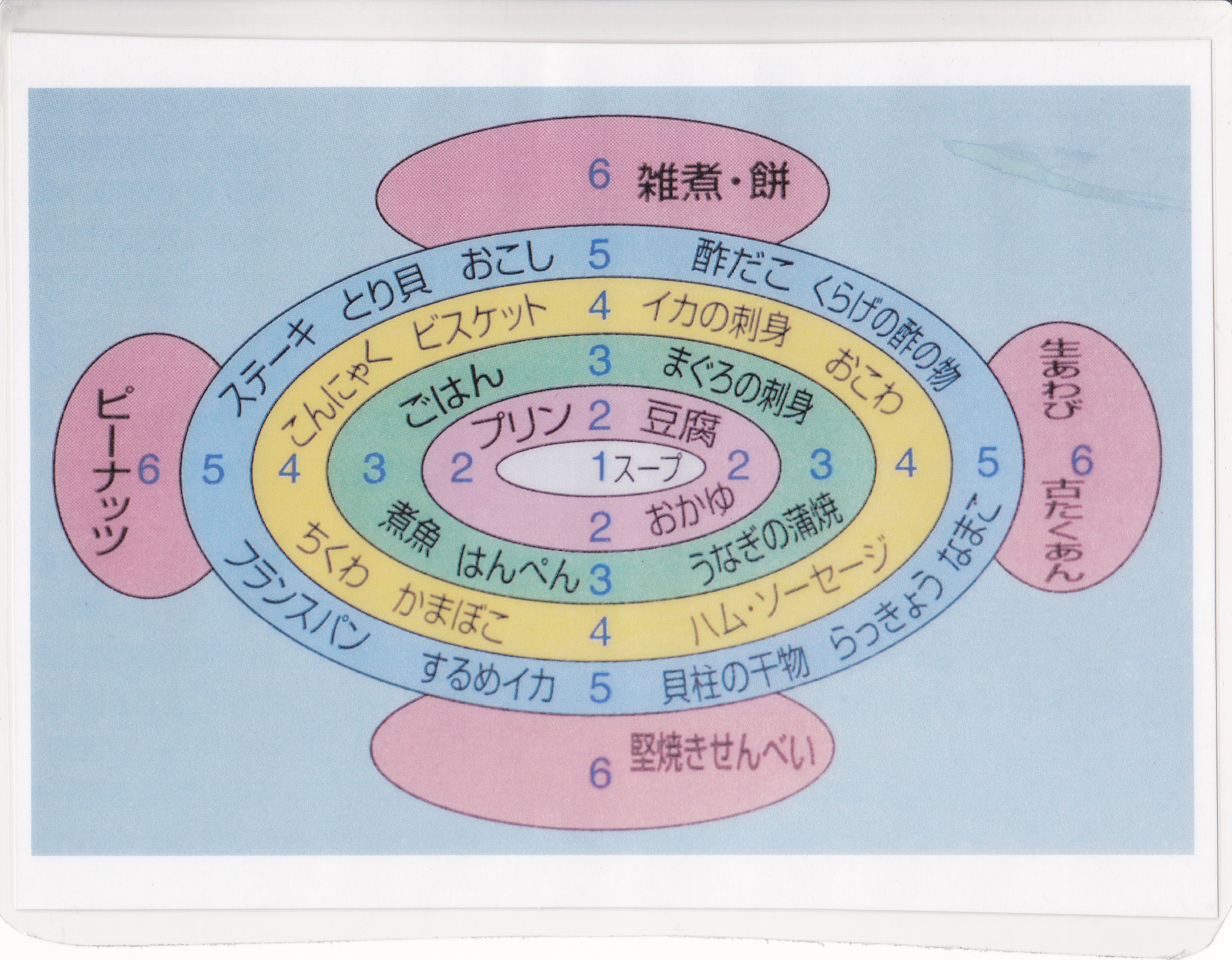 数字が大きいほど硬い食材です。