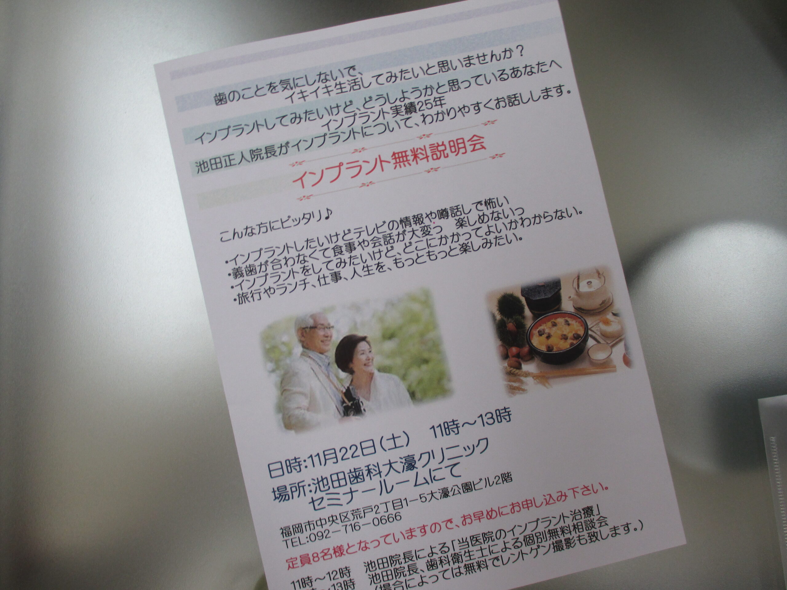 11月22日(土)には当院にてインプラントの無料説明会があります!