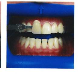①歯の色見本のシェードガイドを使用し現在の歯の明るさを確認します。