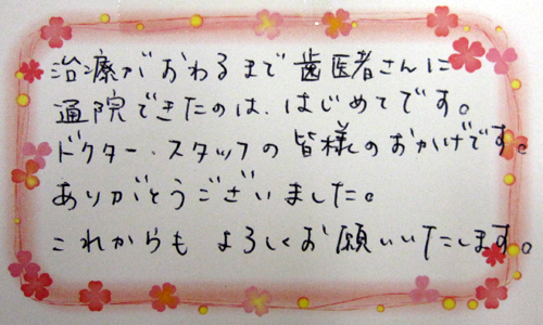 治療がおわるまで歯医者さんに通院できたのは、はじめてです。