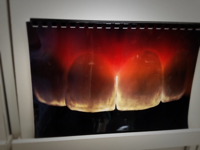 かぶせ物の色を天然歯に合わせる為の写真の撮影方法を教えて頂いたり