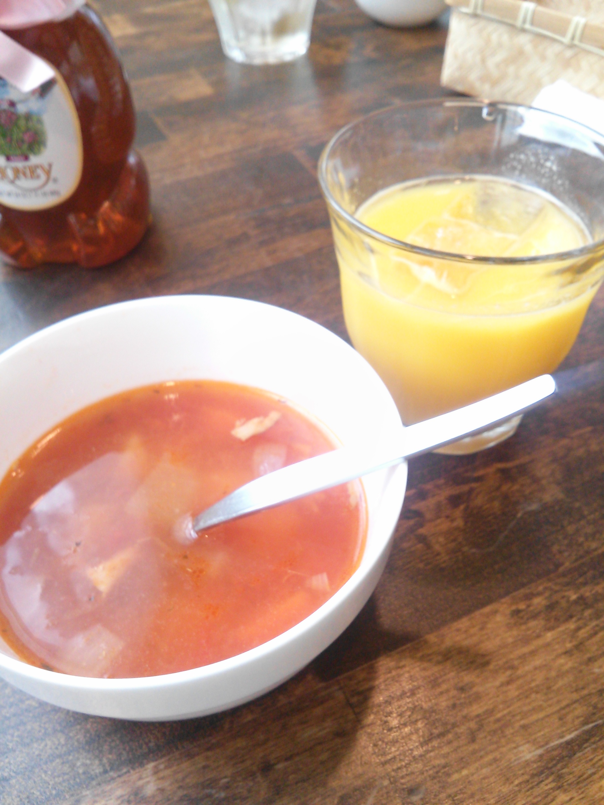 ミネストローネスープから頂きまして ミネストローネは、優しいお味。ほっこりした気分になります。