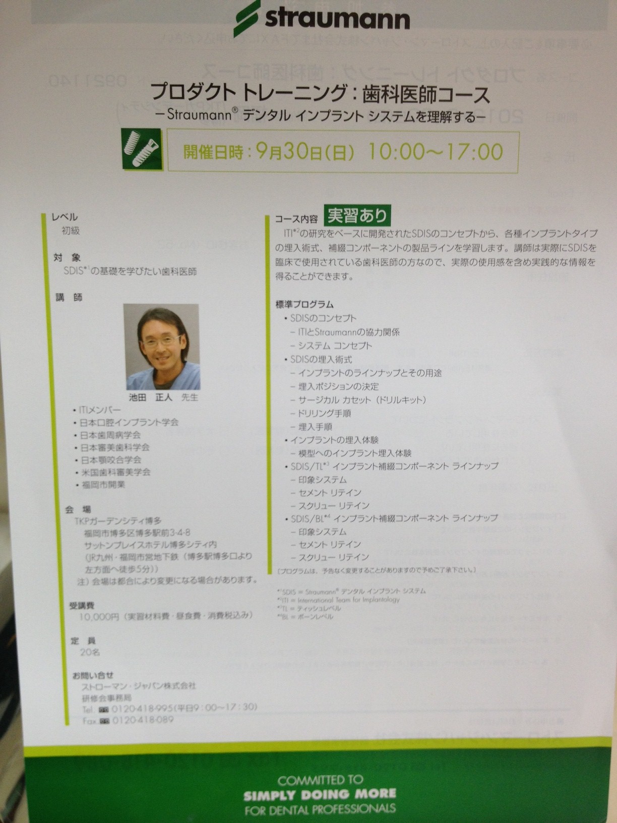 今回のセミナーは、インプラントの大手メーカー『straumann,ストローマン』社から