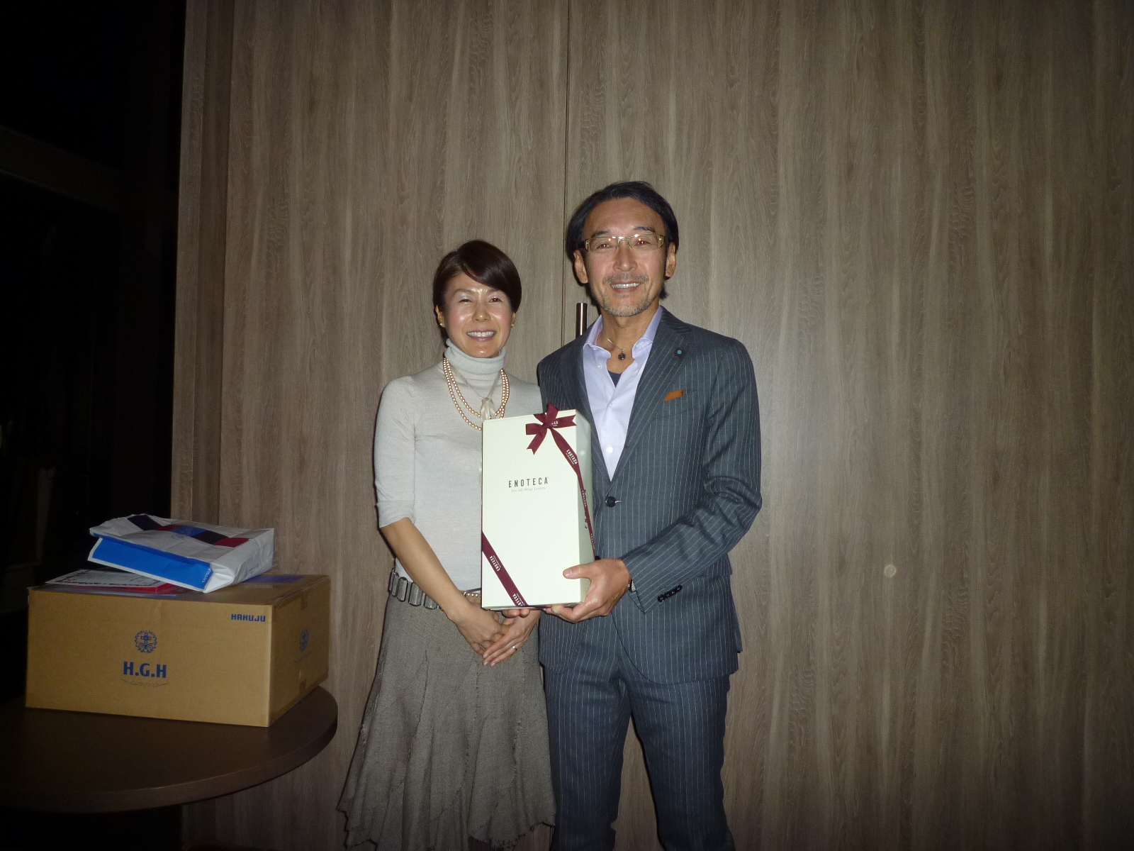 そして、日頃の感謝を込めてスタッフ全員で院長夫妻にワインをプレゼントしました。